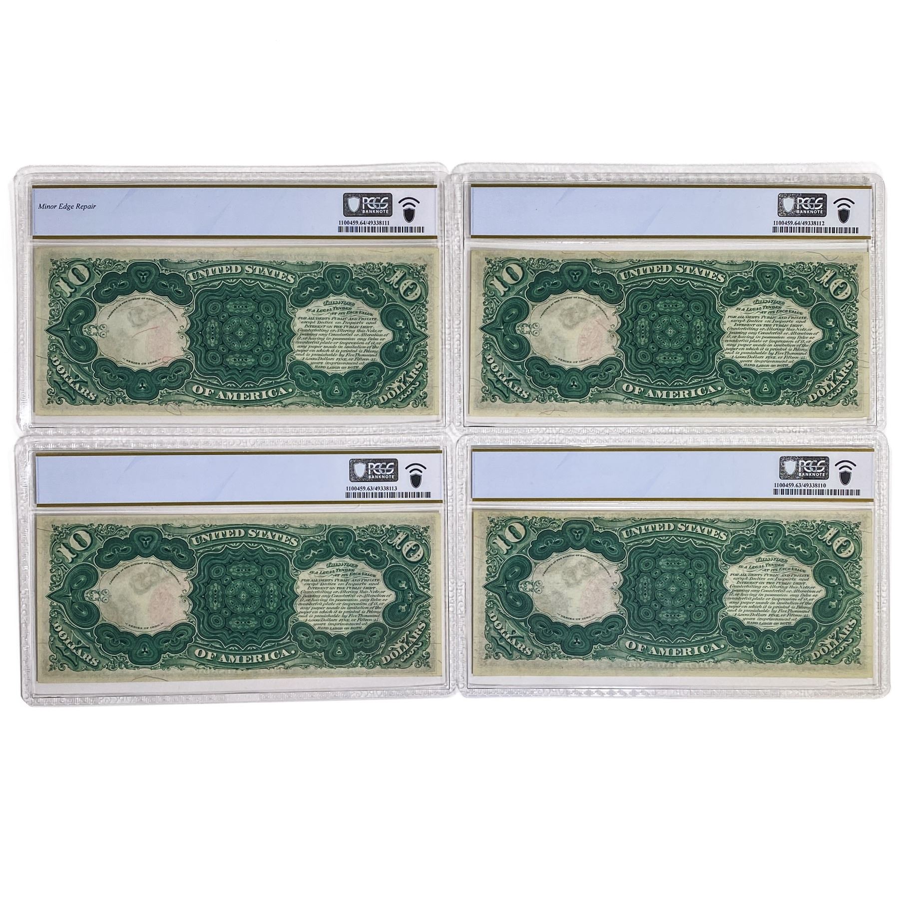 CUT SHEET OF (4) CONSECUTIVE FR. 105 1880 $10 JACKASS LEGAL TENDER USN'S PCGS BA