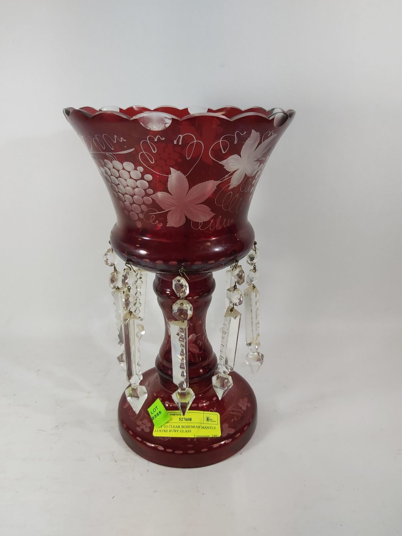 CUT TO CLEAR BOHEMIAN MANTLE LUSTER RUBY GLASS