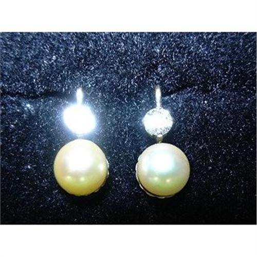 CUTE VICTORIAN EARRINGS W/ DIAMOND & PEARL #1045140