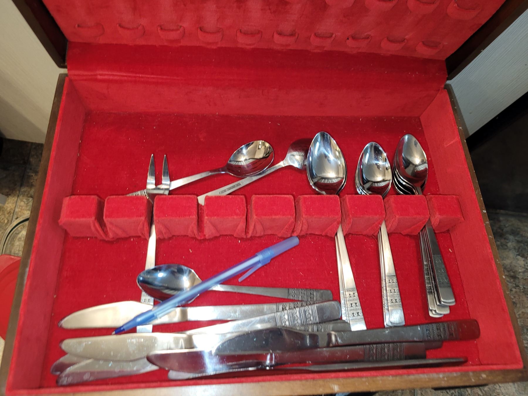 CUTLERY IN WOODEN BOX. SEE PICTURES. AS IS WHERE IS. NO REFUND. NO RETURNS