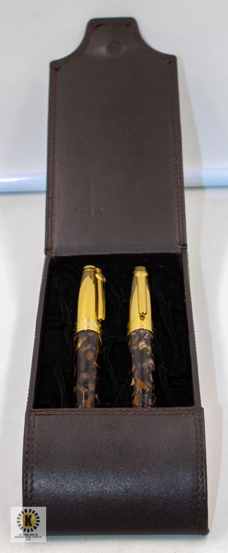 CUTTER + BUCK PEN SET AND LEATHER CASE