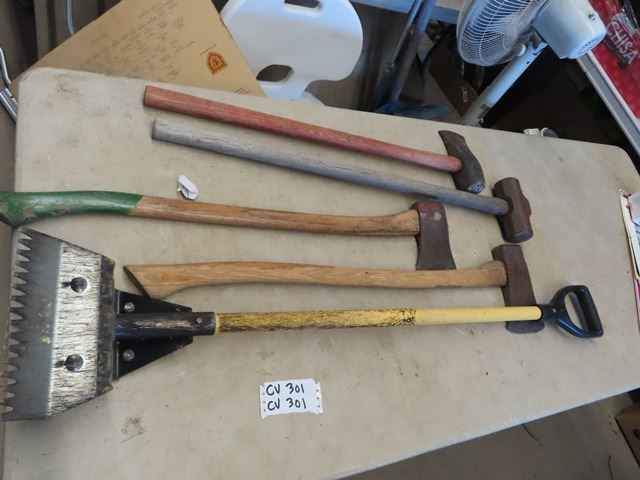 (CV) 2 Axes, Splitting Axe, Sledge Hammer, Roofing Shingle Scraper