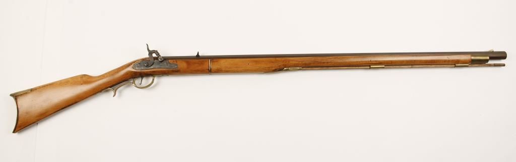 Replica of a percussion Kentucky rifle. 36" octagon barrel. Two piece stock. Approx. 51" overall. Color case hardened lock plate and brass furniture. *Antique Firearm*