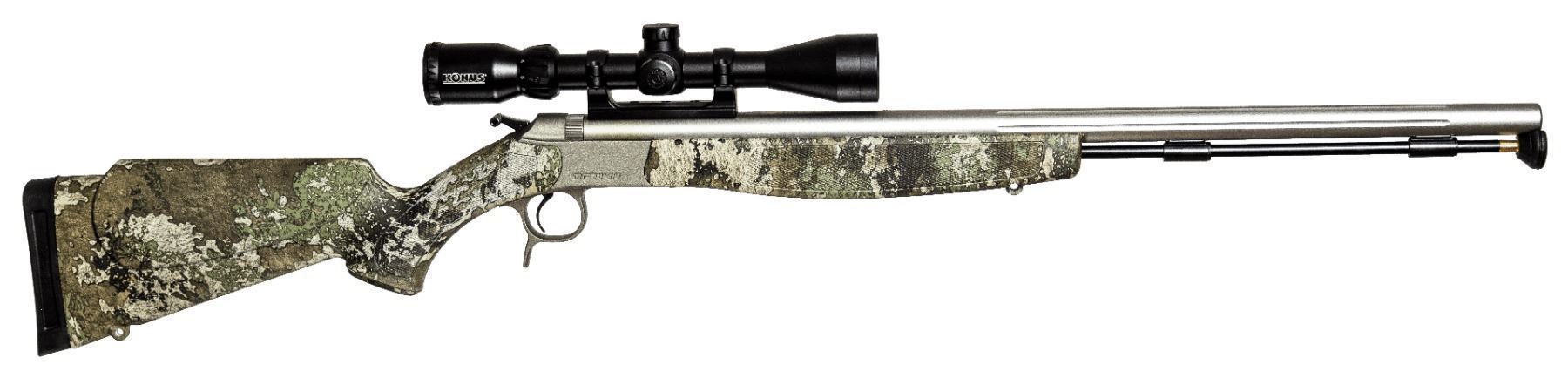 Modeled after CVA's top-of-the-line ACCURA® V2, OPTIMA V2 rifles feature the same trigger-guard actuated breeching lever, internal parts, and trigger. All Optima V2 rifle models featured in the CVA catalog and on the CVA website feature stainless steel or Nitride-treated stainless steel barrels. Add in CVA?s Quick-Release Breech Plug (which is finger removable), 100% ambidextrous stock, and a CrushZone® recoil pad, and you've got a gun with more quality features than any other muzzleloading rifle in its price range. Equipped with a 26" barrel, the OPTIMA V2 is easy to maneuver in the treestand and comfortable to carry in the mountains. And it comes standard with a DuraSight® DEAD-ON one-piece scope mount, and CVA's solid aluminum PalmSaver ramrod.