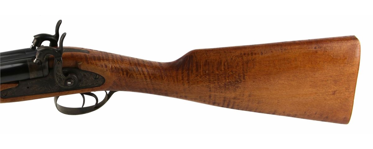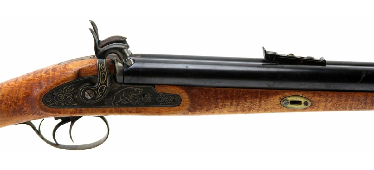 CVA REPRODUCTION BLACK POWDER SBS SHOTGUN Connecticut Valley Arms black powder side by side "rabbit ears" percussion shotgun. 28.5 inch barrels, with ramrod. Type: Percussion Manufacturer: CVA Barrel Length: 28.5 inch Condition: Some blemishes to bluing stock free of cracks Overall good condition.