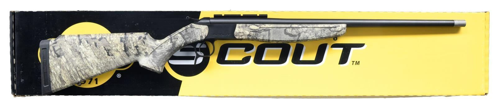 Cal. 410, 3". S# 61-03-000049-20. Bbl. 22" w/ removable choke. Top rear of bbl. has Weaver style scope mount. Real Tree Timber camo stock set w/ bottom mounted sling studs. UNATTACHED ACCESSORIES: factory box numbered to gun, manual & trigger lock. CONDITION: all aspects near excellent. (23-1480/MJC). MODERN. $250-350.
