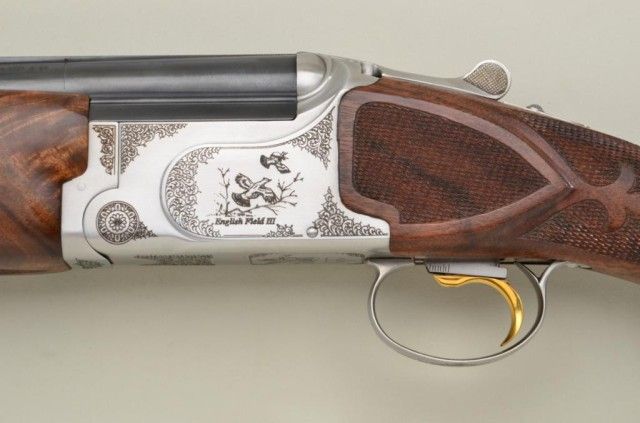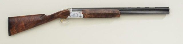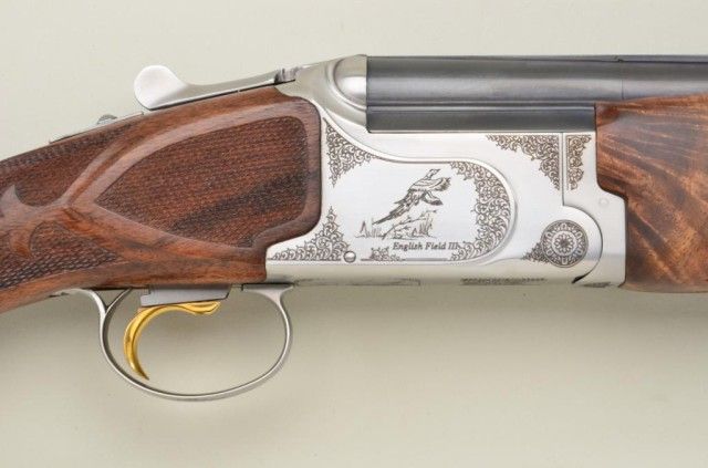 CVC Inc. English Classic Field III 12 gauge over and under shotgun with Westport, Conn. Barrel address and similar to 101 Winchester in its design. The gun shows 25" over and under split barrels with ventilated rib,single trigger, auto ejectors, select checkered burl walnut stocks, straight English style grip over size fore end, fancy checkering, serial #CVC804. The gun is choked skeet over skeet. The stockmeasures13-1/2" to the end of the wood and 14" to the end of the thin pad. Condition is fine to excellent showing slight use 98-99%. Robert E. Petersen collection Est. $900-$1,800.