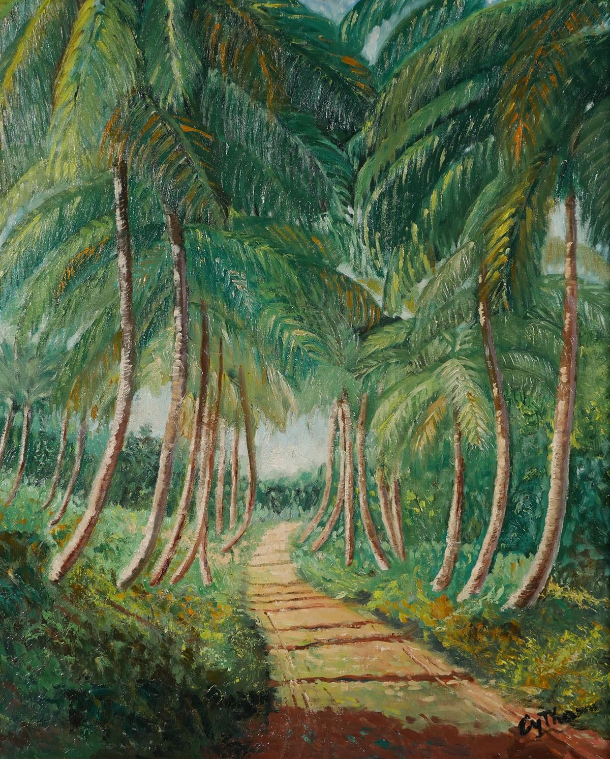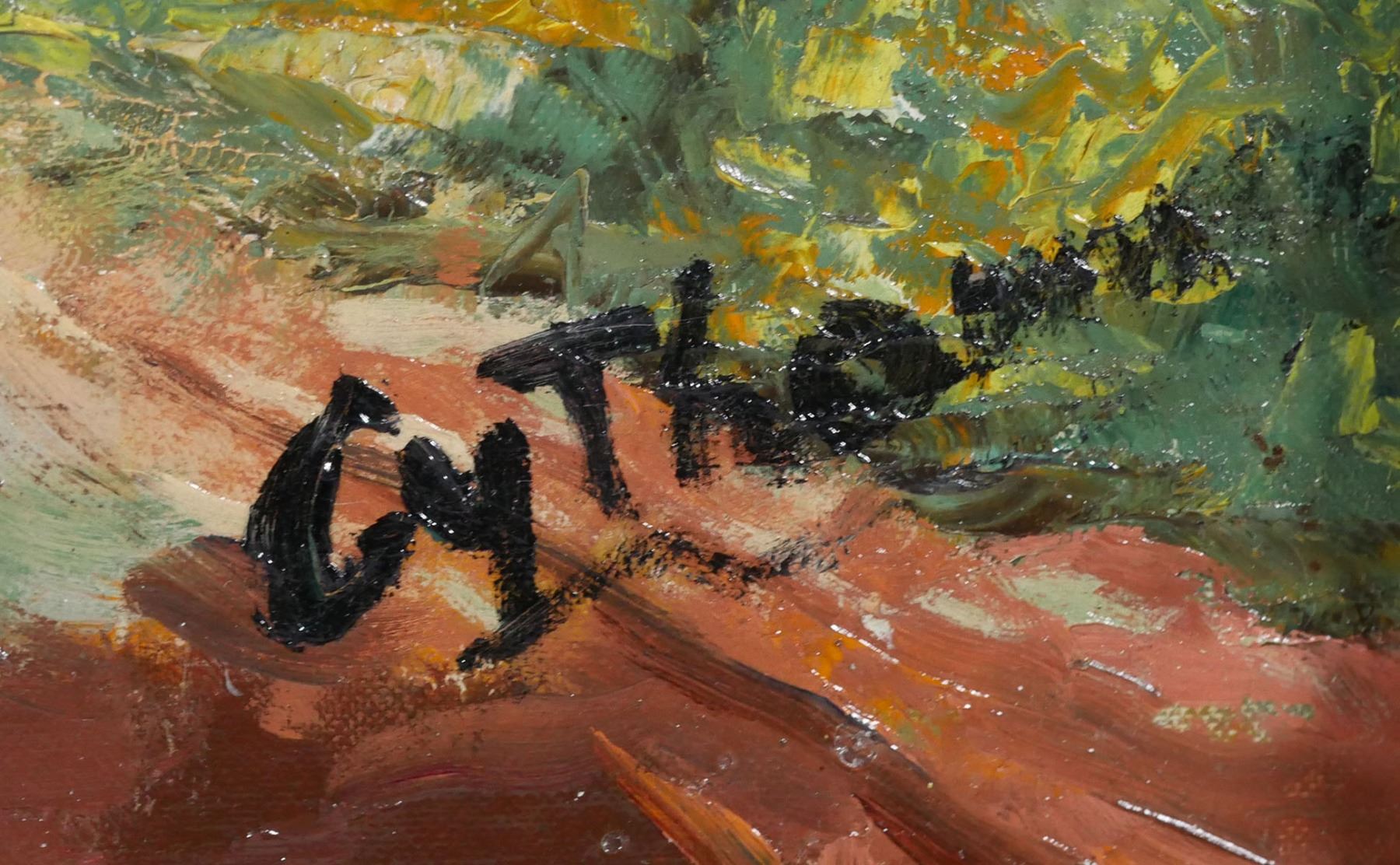 Oil on board painting of a Florida landscape, signed "Cy Thomas" at lower right. Overall framed size is 26" x 31". Excellent condition.