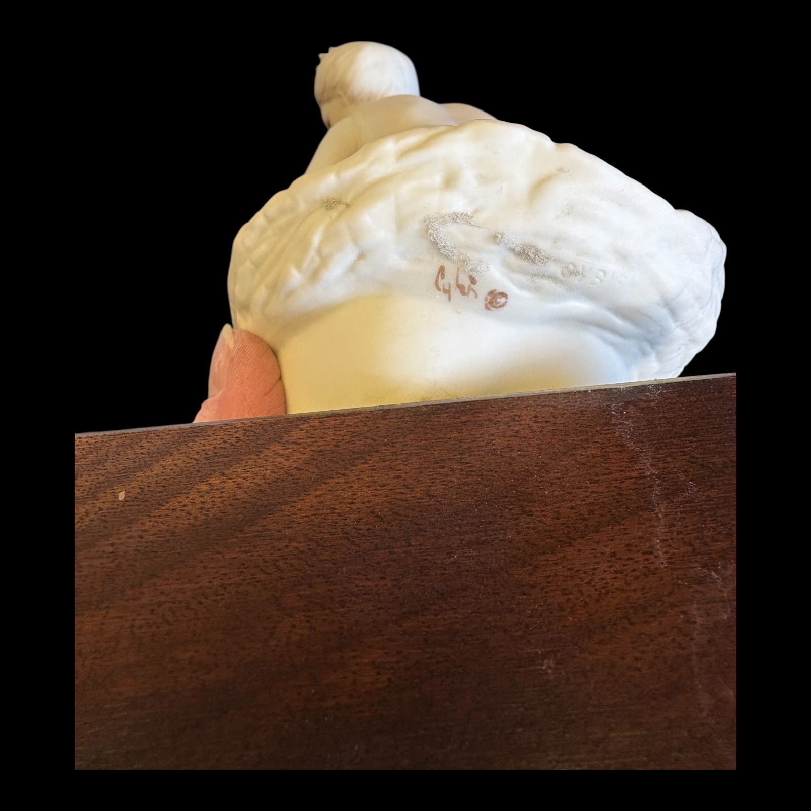 SIGNED - Wood base scuffed from swiveling figure - 13 in.