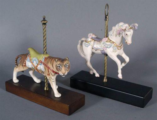 CYBIS PORCELAIN CAROUSEL FIGURES 12" high, tiger and horse, condition: excellent, no damage or restoration. packing and shipping w/in continental USA (excluding insurance) $40