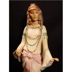 Cybis Queen of Sheba opera figurine. 14" porcelain. Dressed in queenly tunic with bejeweled headpiece. #87. Dated 1989. Condition: Excellent