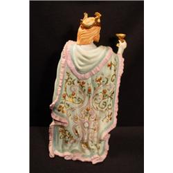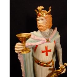 Cybis Richard the Lion Hearted Shakespeare figurine. 15" porcelain. Carrying his sword and toasting his cup. Wears a King's cloak and crown. Dressed as a Crusader. #155. Condition: Excellent