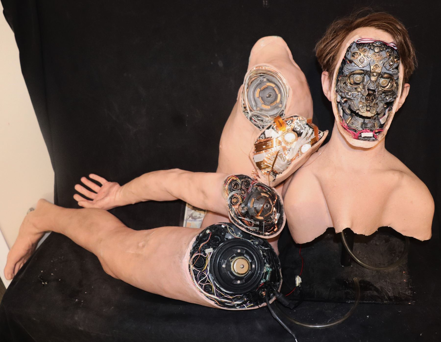CYBORG A COMPLETE ASSEMBLAGE OF SILICONE PARTS HEAD TORSO ARM & LEG FACE COMES OFF & LIGHTS UP!