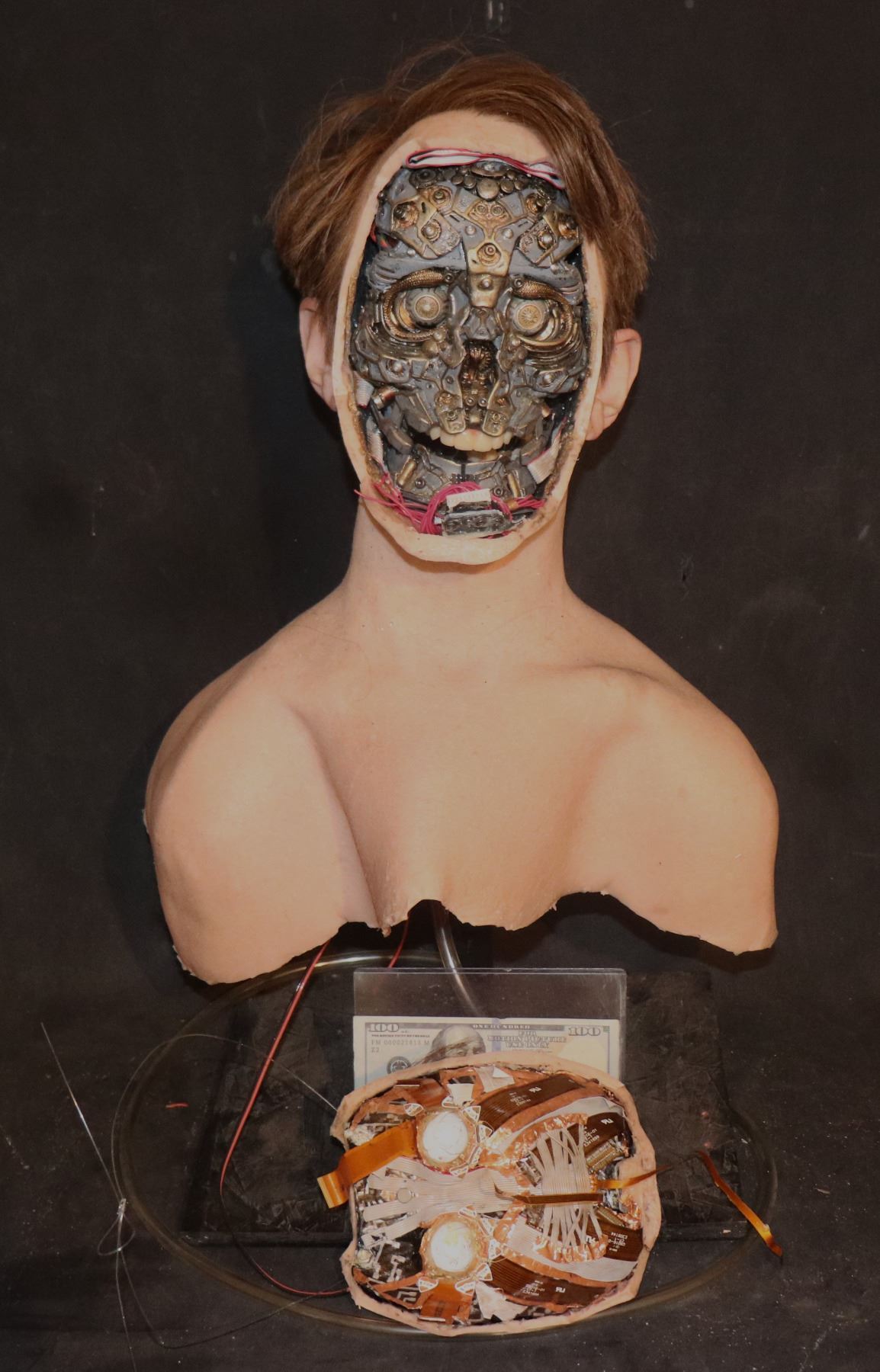 CYBORG HEAD FULL BUST FACE COMES OFF SHOWING MECHANICS & LIGHTS UP!
