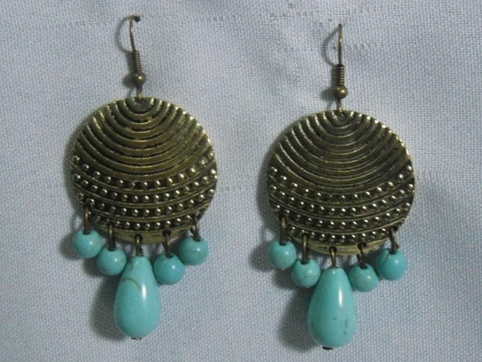 CYMBALS BLUE TURQUOISE DANGLING EARRINGS STONE BLUE TUR **|**|** CYMBALS BLUE TURQUOISE DANGLING EARRINGS STONE BLUE TURQUOISE METAL BRASS ; MSRP: $150