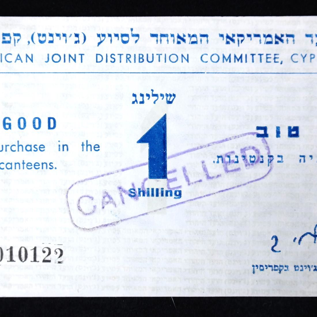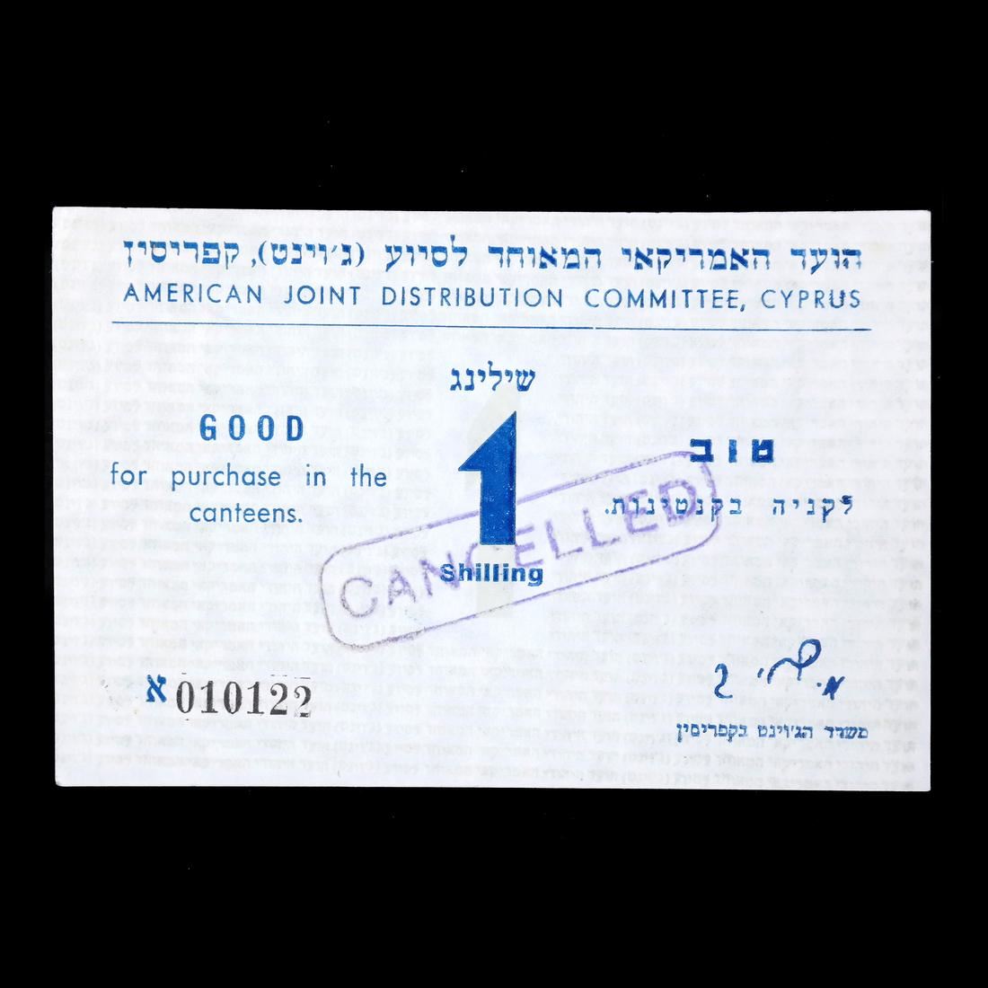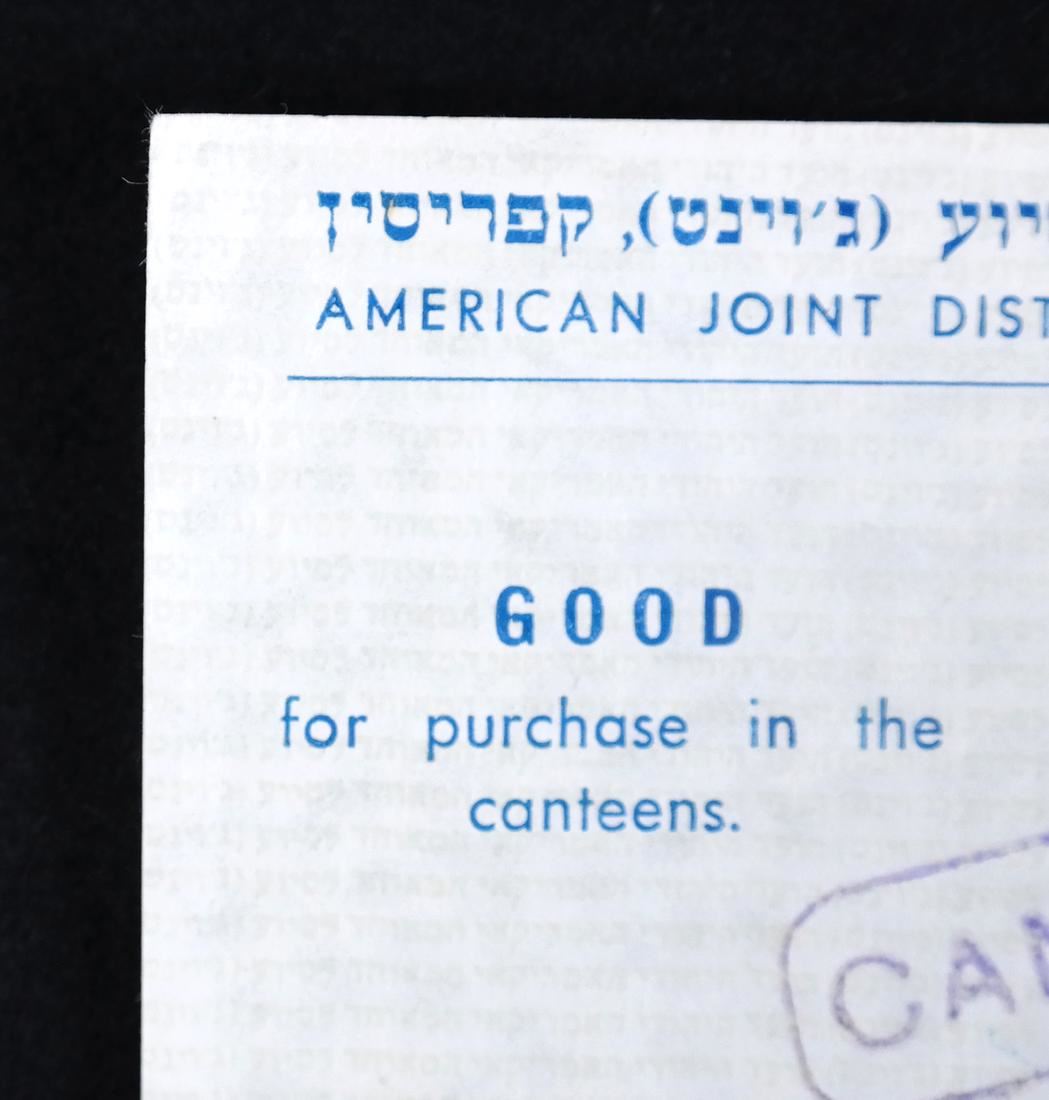 Second issue, Good for purchase in the canteens, serial #010122, violet CANCELLED handstamp, few tone spots, Extremely Fine.