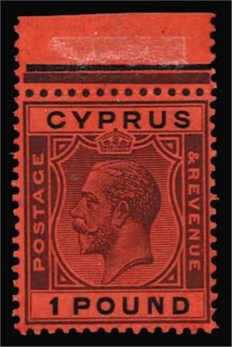 1924-28 £1 purple and black/red (SG 102) top marginal, mounted on margin at the front and just a tiny hint of being hinged on adhesive, fine fresh colours, cat £300+