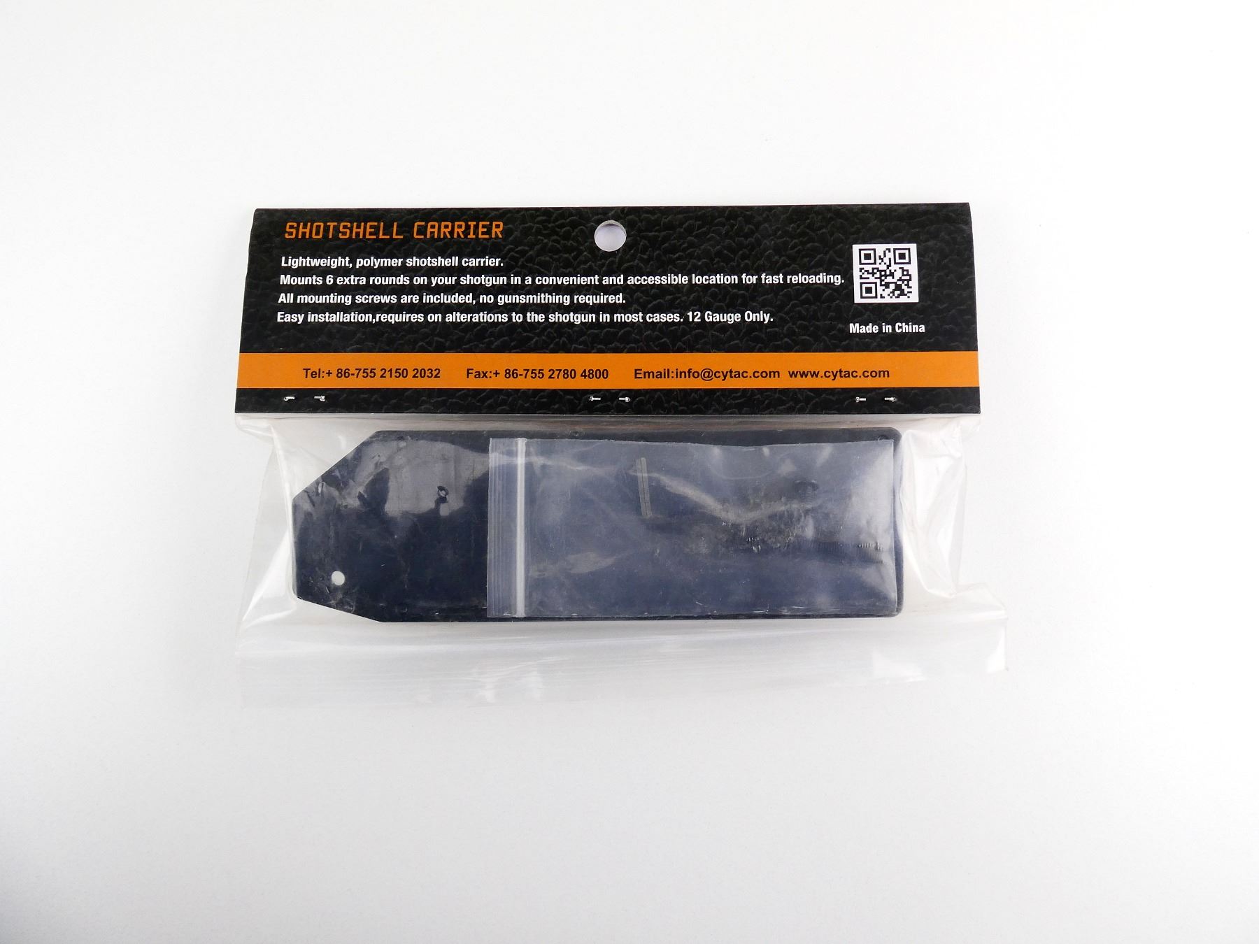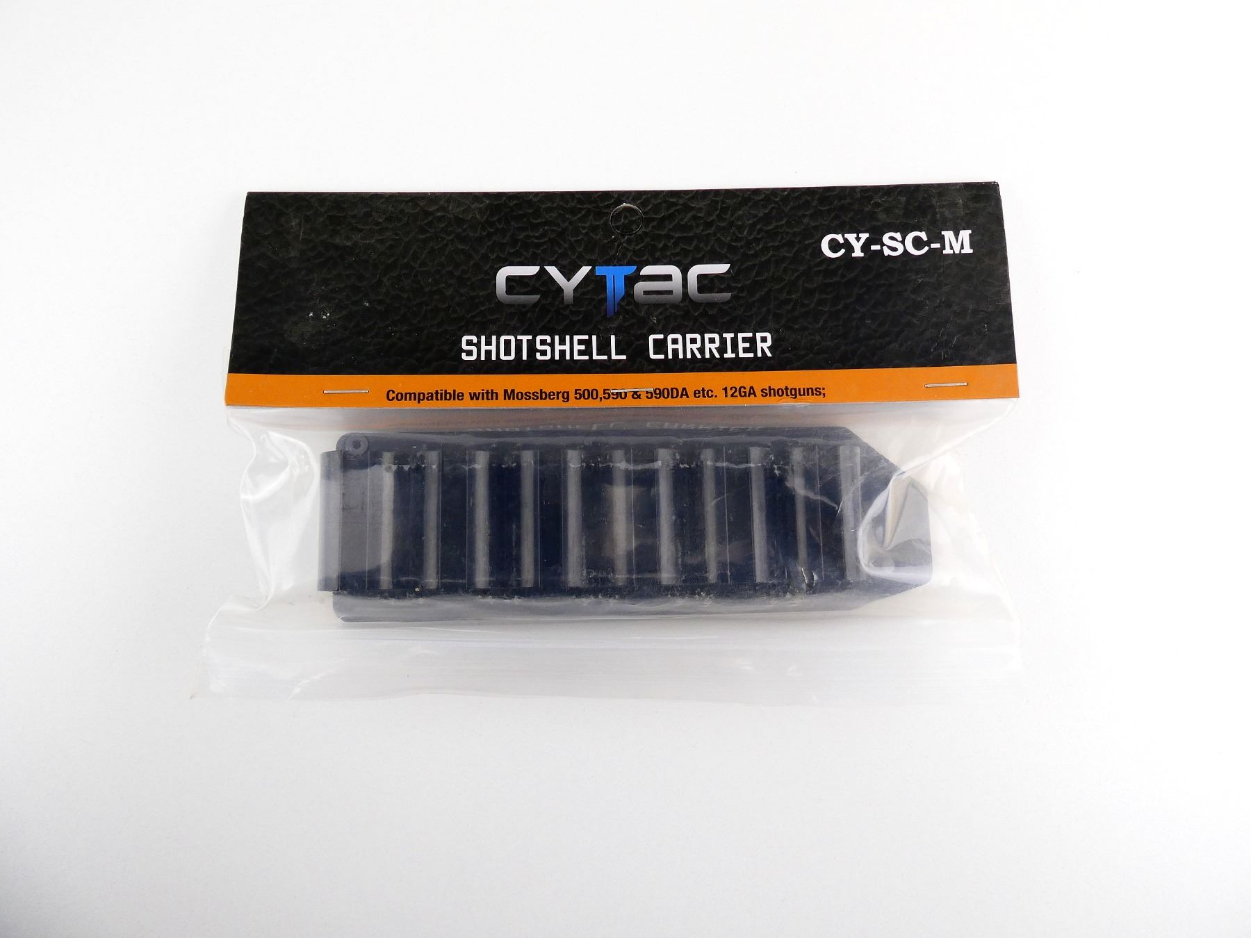 (1) CYTAC CY-SC0M SHOTSHELL CARRIER, FITS MOSSBERG 500 / 590 / ETC. 12 GAUGE SHOTGUNS, POLYMER CONSTRUCTION, HOLDS SIX SHOTGUN SHELLS, ATTACHES TO SHOTGUN, APPEARS NOS IN ORIGINAL PACKAGING. SEE PHOTOS.