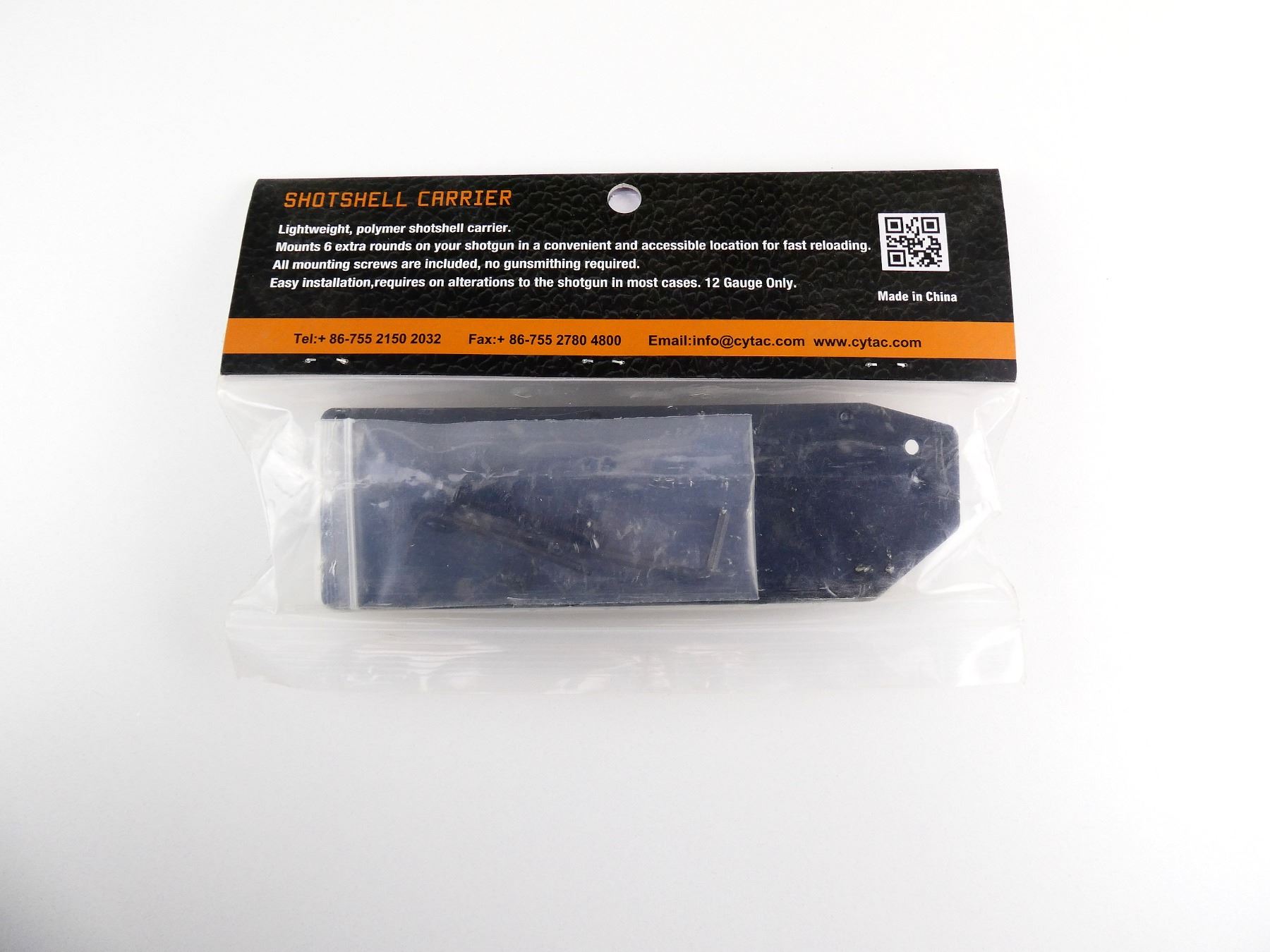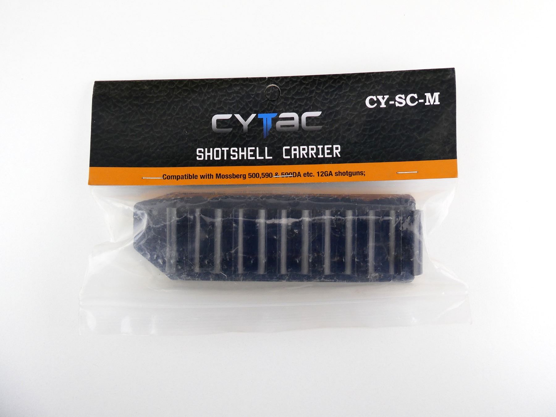 (1) CYTAC CY-SC0M SHOTSHELL CARRIER, FITS MOSSBERG 500 / 590 / ETC. 12 GAUGE SHOTGUNS, POLYMER CONSTRUCTION, HOLDS SIX SHOTGUN SHELLS, ATTACHES TO SHOTGUN, APPEARS NOS IN ORIGINAL PACKAGING. SEE PHOTOS.