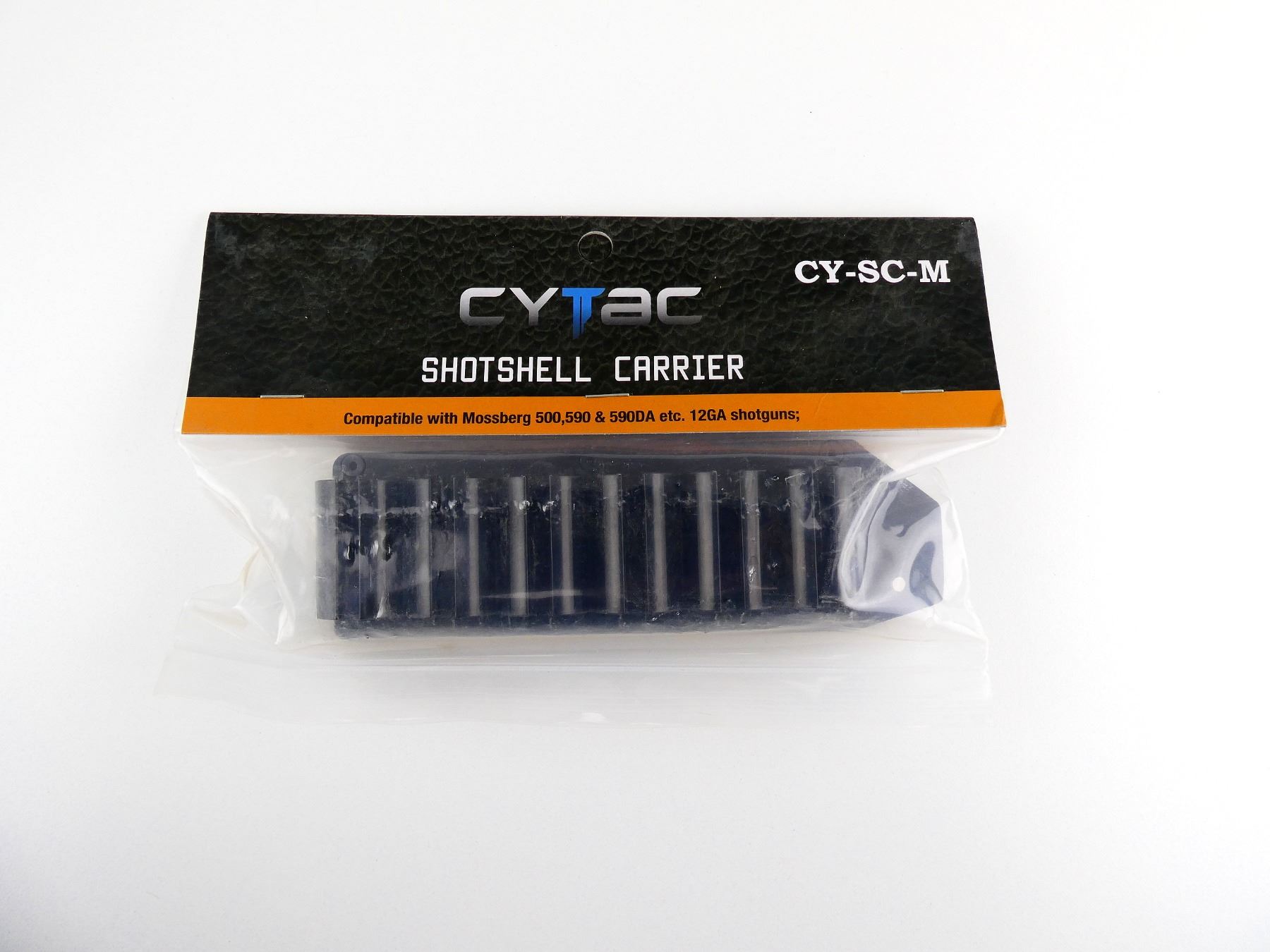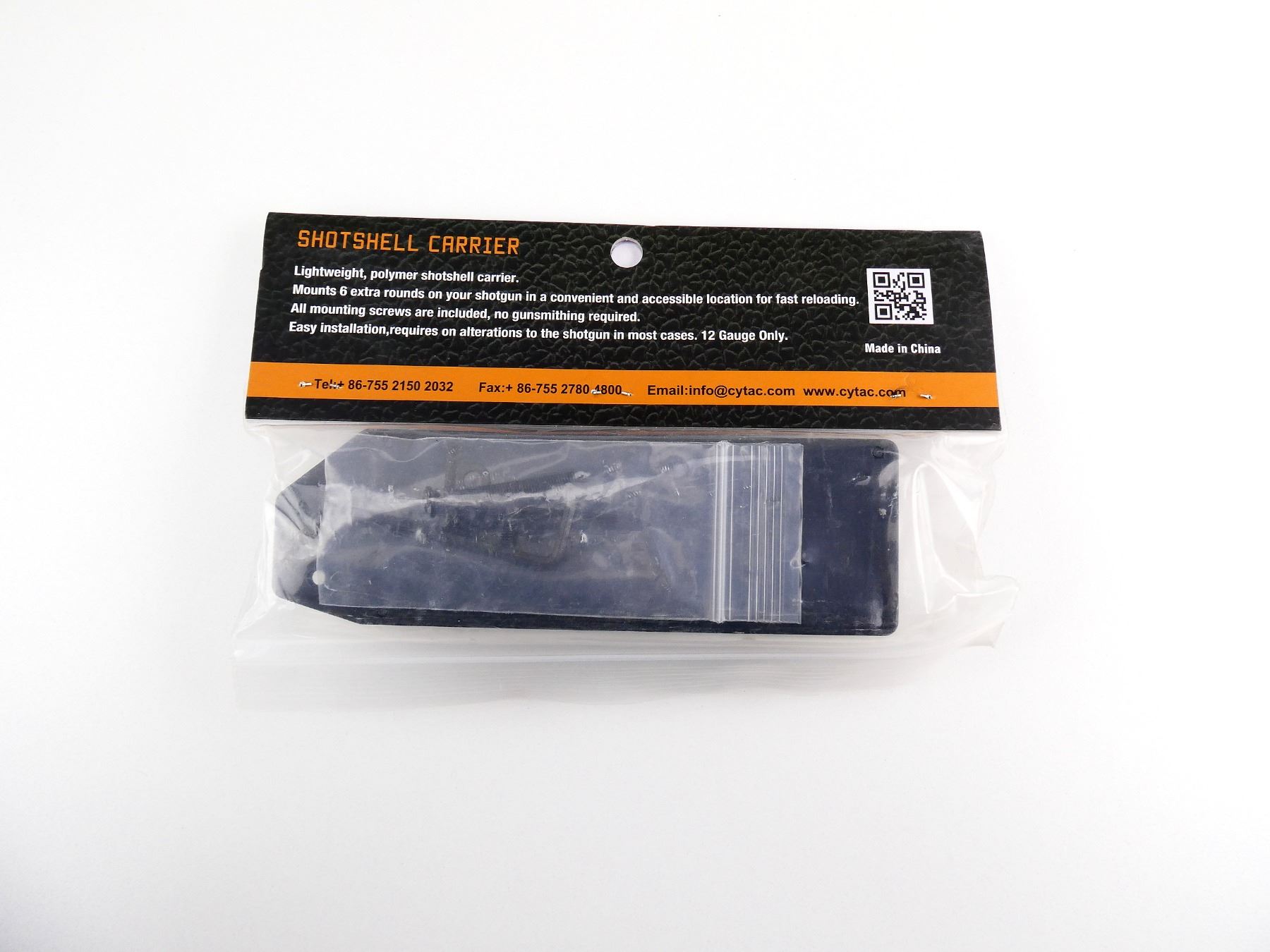 (1) CYTAC CY-SC0M SHOTSHELL CARRIER, FITS MOSSBERG 500 / 590 / ETC. 12 GAUGE SHOTGUNS, POLYMER CONSTRUCTION, HOLDS SIX SHOTGUN SHELLS, ATTACHES TO SHOTGUN, APPEARS NOS IN ORIGINAL PACKAGING. SEE PHOTOS.