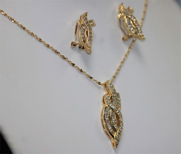 CZ 14K GOLD PLATED NECKLACE AND EARRINGS SET **|**|** CZ 14K GOLD PLATED NECKLACE AND EARRINGS SET ; METAL BRASS; BRAZILIAN JEWELRY; 14K GOLD PLATED ; MSRP: $0