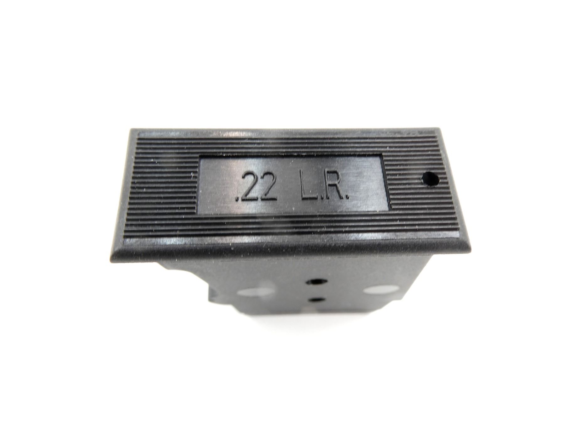 (1) .22 LR SINGLE SHOT ADAPTOR, BLACK POLYMER, REPLACES MAG, BASE MARKED: ".22 LR", APPEARS NOS WITH ORIGINAL PACKAGING. SEE PHOTOS.