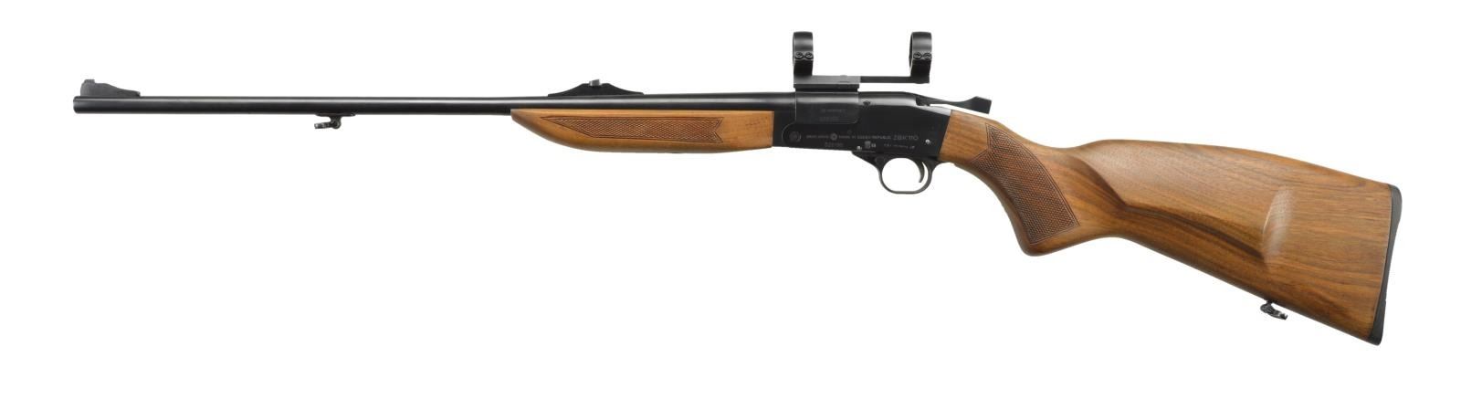 Cal. 22 Hornet. S# 020190 (1993). Bbl. 23 3/4" w/ ramp mounted fixed sights & BRNO Arms scope mt. Blue finish. CAI import mark on receiver. Checkered walnut stock set w/ cheekpiece & sling swivel; bbl. mounted sling swivel. CONDITION: near excellent overall w/ handling marks. Near excellent bore. (22-2593/MD). MODERN. $300-400.