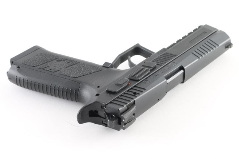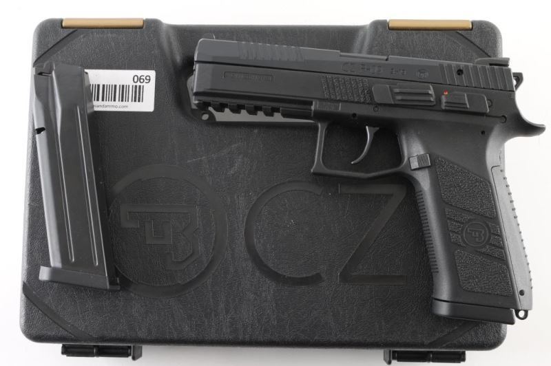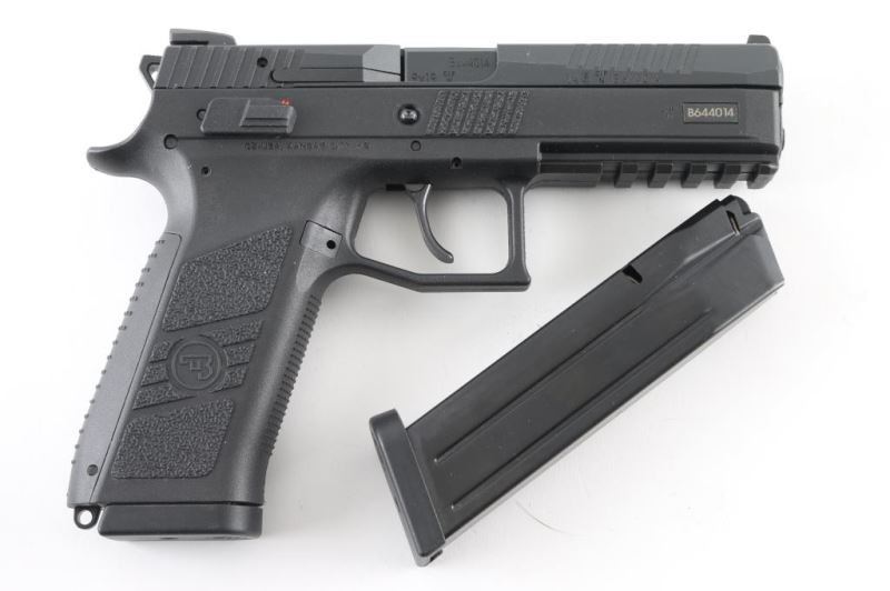 Made in the Czech Republic this is a full size, polymer frame, semi-auto pistol chambered in 9mm. The stainless slide has serrations on the front and back. It sports a 5 slot Picatinny rail, ambidextrous safety and 3 dot luminescent night sights. It comes with the original factory hard case, owners manual, cable lock, extra backstraps and (2) 19 round magazines. This gun looks new. Condition: NRA Excellent++