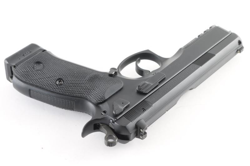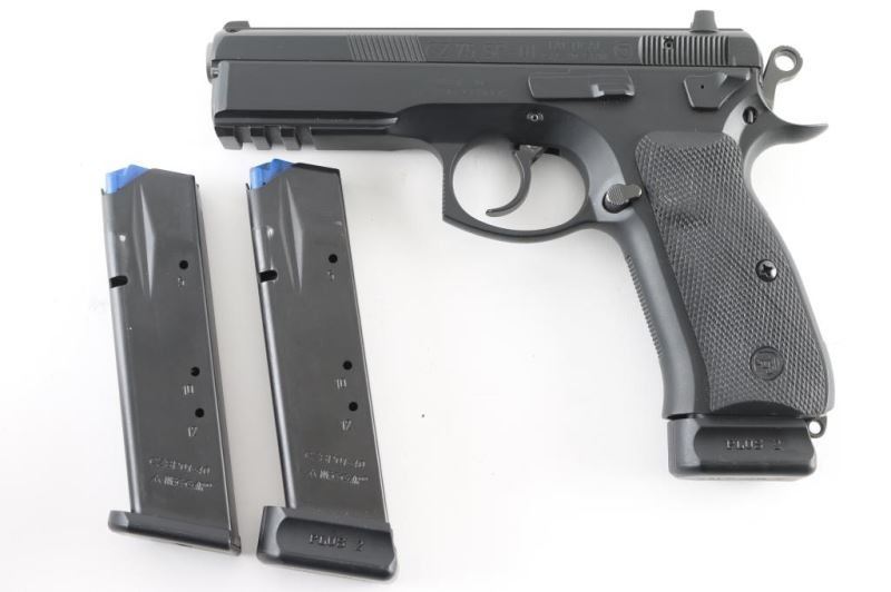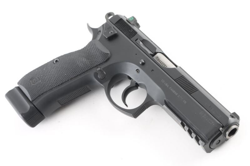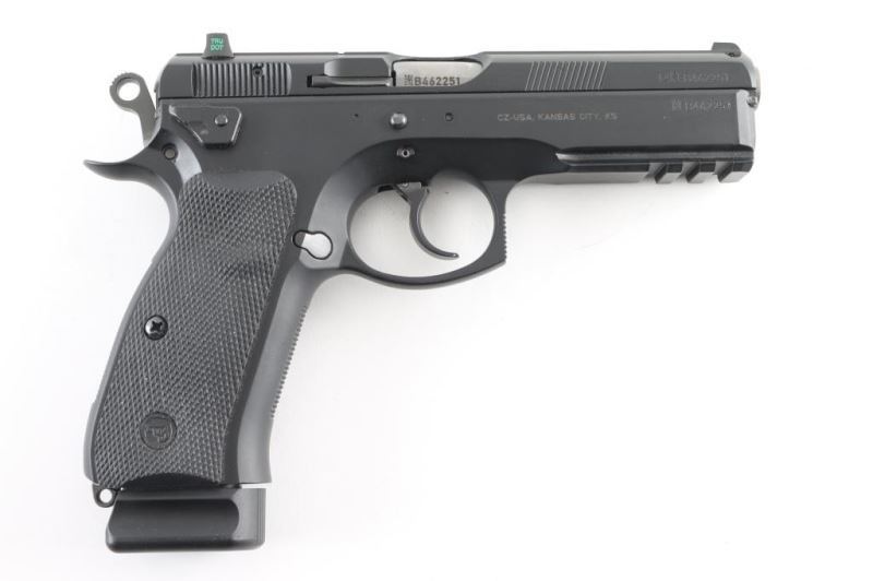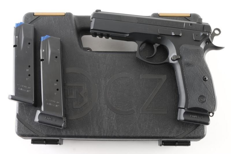 Made in the Czech Republic this pistol features an integral 1913 accessory rail, rubber grip panels, and CZ’s corrosion resistant black polycoat finish. This iteration utilizes an ambidextrous decocker in place of the manual safety on the standard SP-01. Knurled front and backstrap with lanyard ring and 3 dot night sights. Comes with original factory hard case, owners manual, cleaning brush and (3) magazines (one 12 round & two 14 round). The bore is great, this gun looks new. Condition: NRA Excellent++