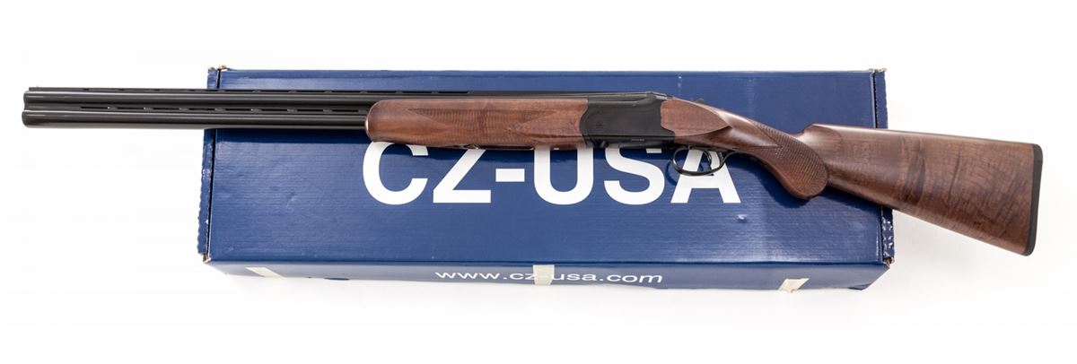 CZ Canvasback Model 103D Over/Under Shotgun, #13P0691, 12 ga., 28'' vent rib barrels, very lightly embellished blue finish, round knob pistol-grip checkered hardwood stock and forend, with removable chokes. Condition is excellent, appearing near new with only light handling marks. In original box with instructions. Last MSRP: $786.00. Est.: $450-$600. (Modern) (Field Time)