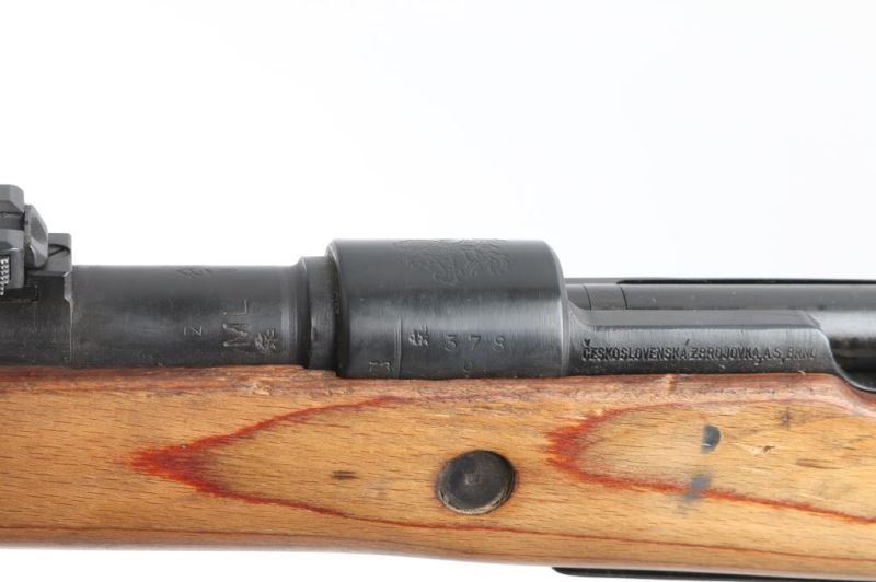 Rifle. Bolt-Action. 5-rd internal box magazine, 24": barrel with serrated ramp, triangle blade front, and tangent rear sights. Czech screw on front sight protector attached. "H" style front barrel band. Post-war rebuilds. Czech "Rampant Lion" crest on receiver ring, "Ceskoslovenska Zbrojovka, A.S. Brno" on sideplate. Czech proofs on receiver and barrel. Serial number matches on receiver, bolt, bolt sleeve, and safety latch. Mismatched floorplate, front barrel band, , rear sight, and buttplate. 8mm Cal., and "Fed Ord Inc." stamped on right receiver ring. Rear sight has two waffenamts, one unreadable, the other Eagle/WaW63. Bolt has waffenamt Eagle/140. Left lower barrel stamped "ML" Underside of barrel stamped "Fed. Ord S.E.M. Ca." Import mark. Rifle has the Fed. Ord. tag and spent test cartridge attached. No cleaning rod. Bore appears good with strong rifling, but dirty. Wood stock/handguard are very good, with blued, cupped buttplate, disc marked "V O". Blued finish is about 98% with minor scratches/edge wear. Plum colored extractor. Action is a little stiff. NRA Condition-Good. C&R Firearm.