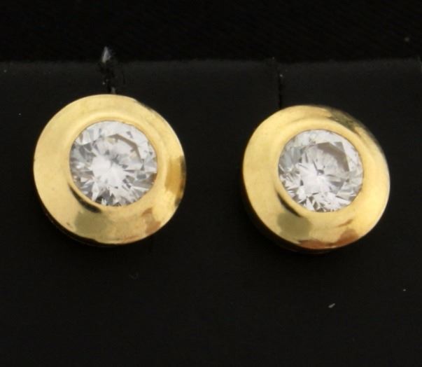 In 14k yellow gold, containing a 5mm CZ in each earring. The earring is 9mm diameter. Does not come with backs. 2.3g.