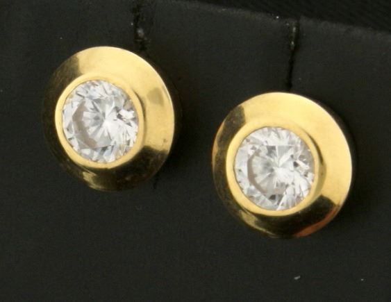 In 14k yellow gold, containing a 5mm CZ in each earring. The earring is 9mm diameter. Does not come with backs. 2.3g.