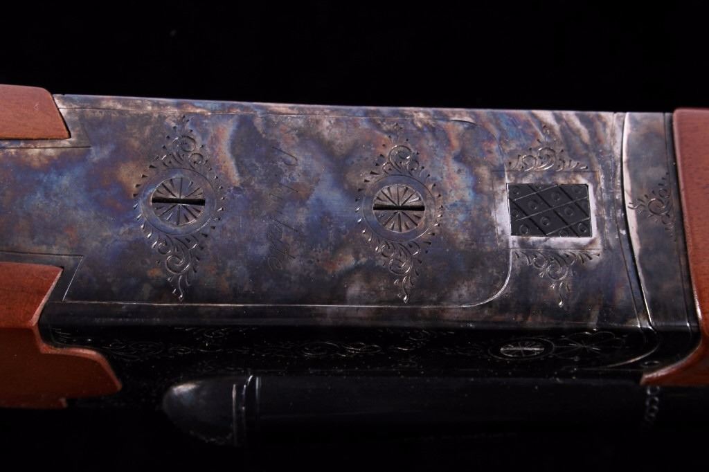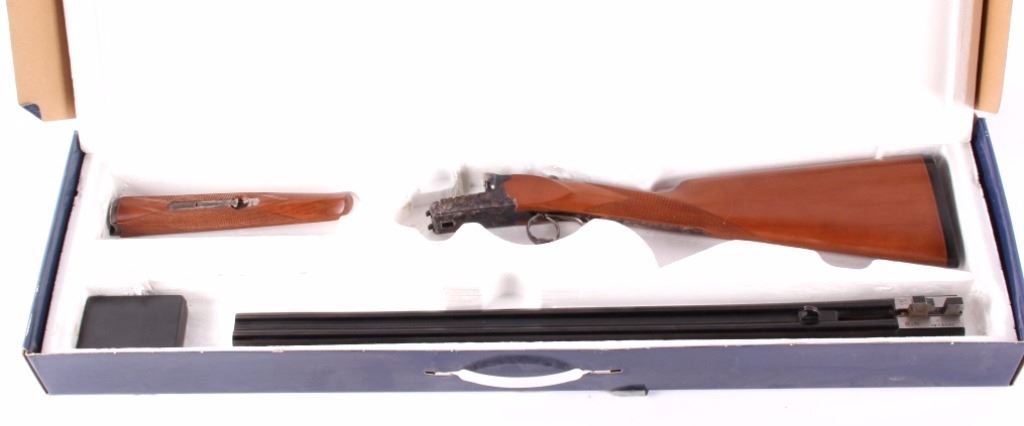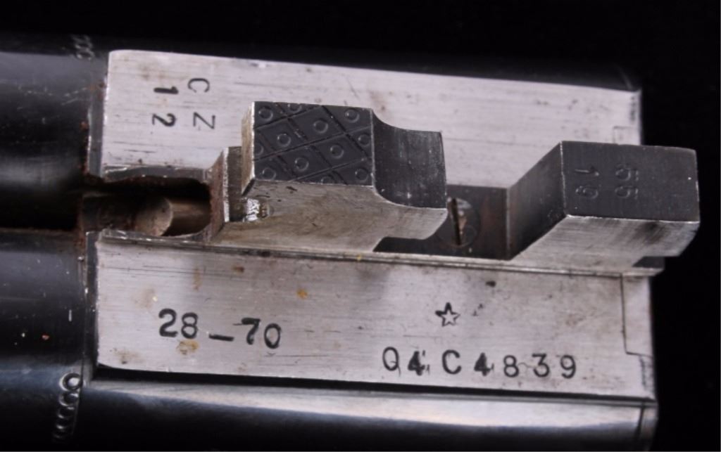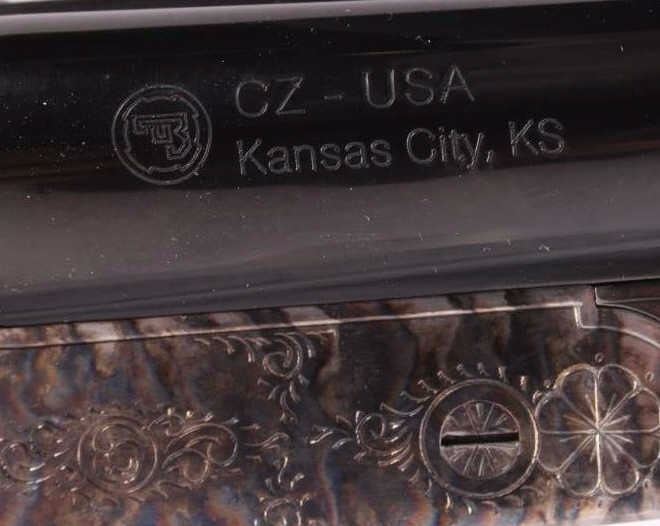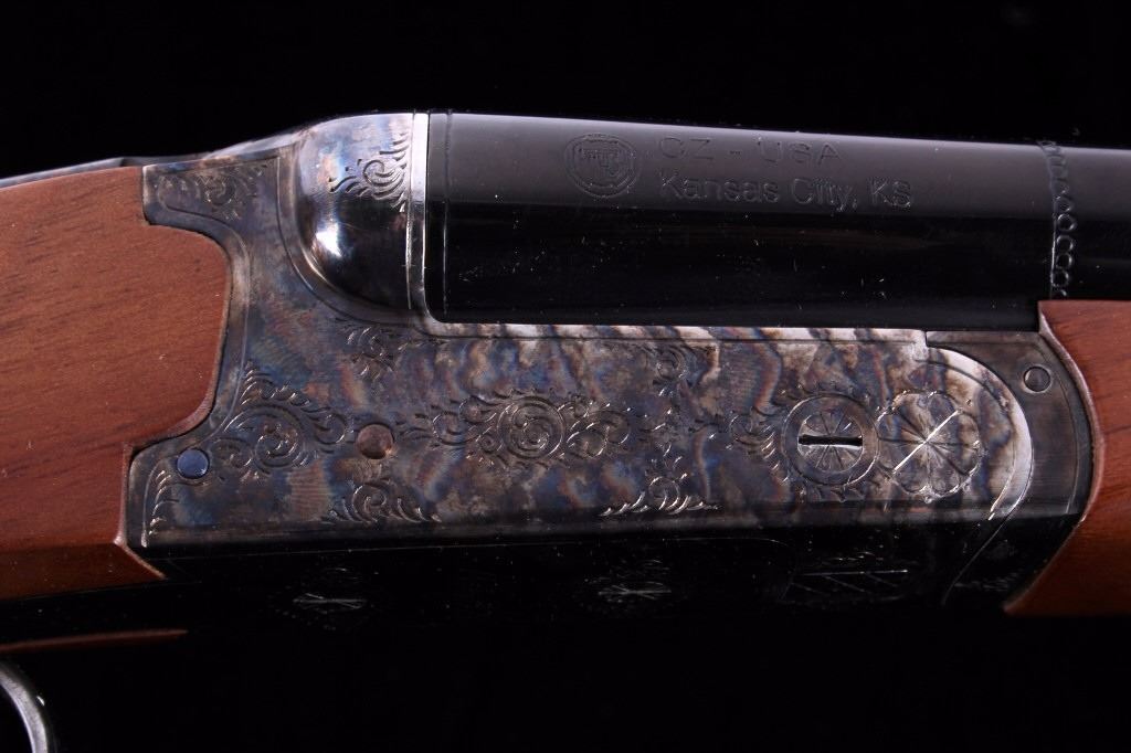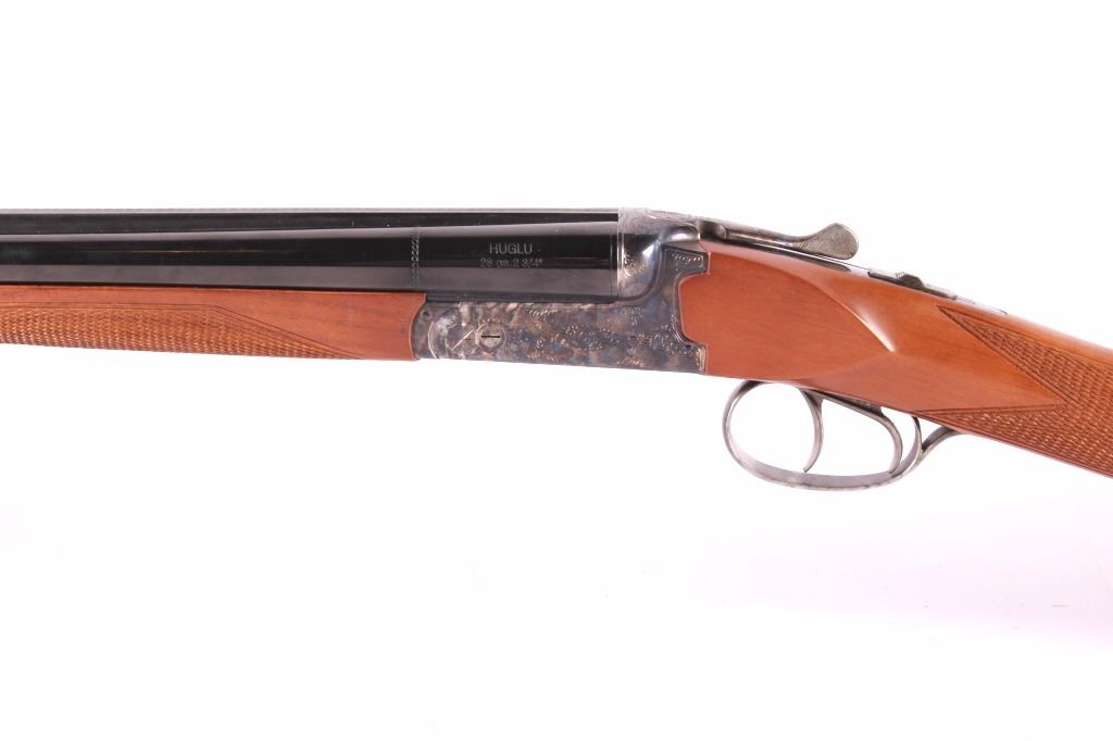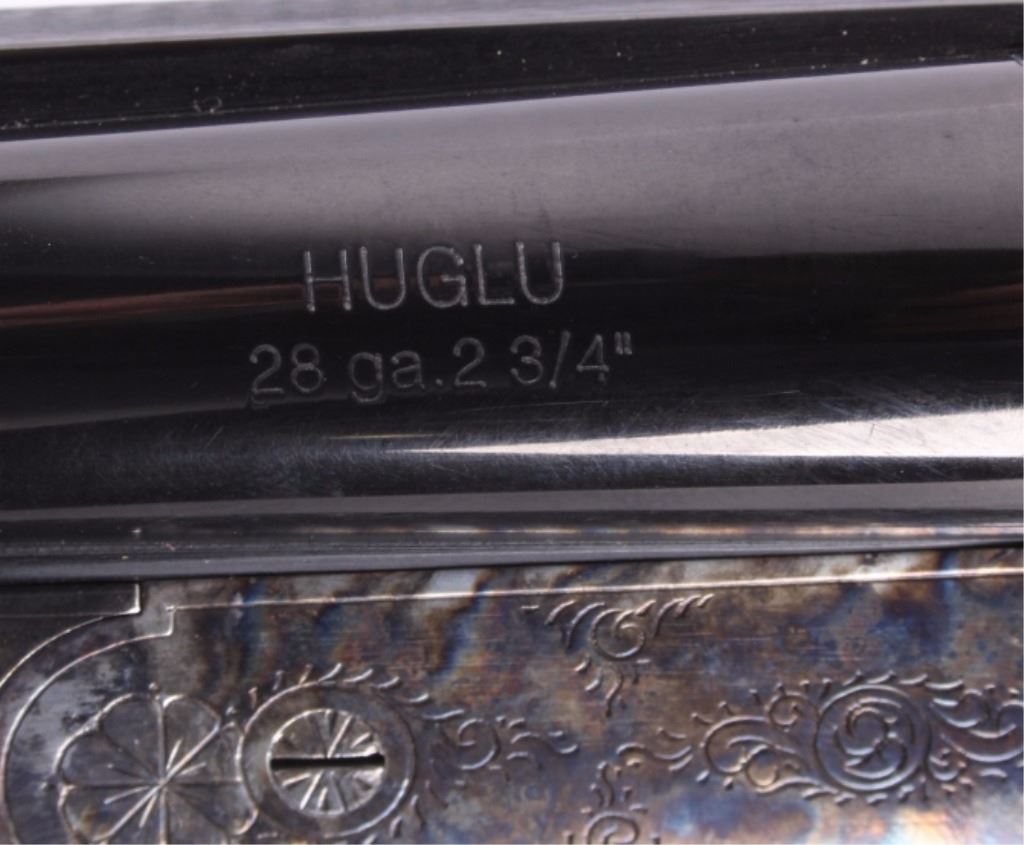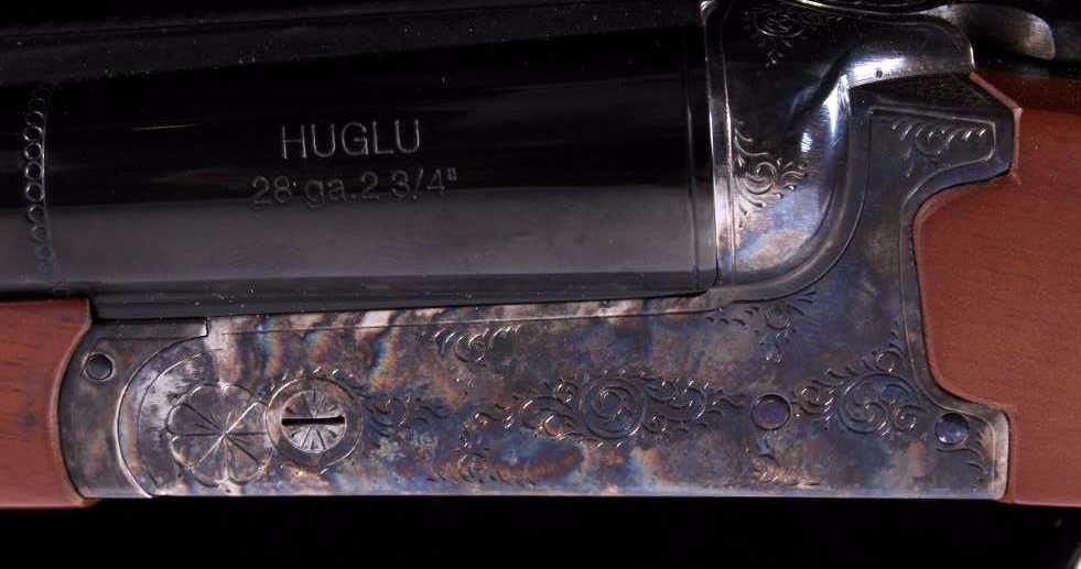 This is a CZ-USA Kansas City, Kansas HUGLU Bob White 202B Model 28 gauge side by side double barrel shotgun. CZ-USA is a subsidiary of the parent company, Ceska Zbrojovka A.S. Uhersky Brod (CZUB) of the Czech Republic. The shotung has a case hardened heat treated wonderful finish with an etched like design and deep blue'd barrels. The stock is solid wood with checkering and shows some slight handling wear. The firearm is in the original box and shows very little use with good condition. The shotgun comes with a 26"L set of barrels that takes 28 GA 2 3/4" shells. The piece is made in Turkey. Serial number 04C4839.