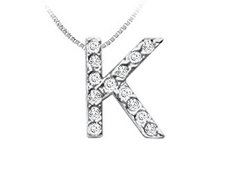 Dangling from the 16" inch chain this cursive lettering initial K pendant is accentuated with round white CZs. Perfectly crafted in sterling silver this alphabet pendant makes a great gift for any occasion.