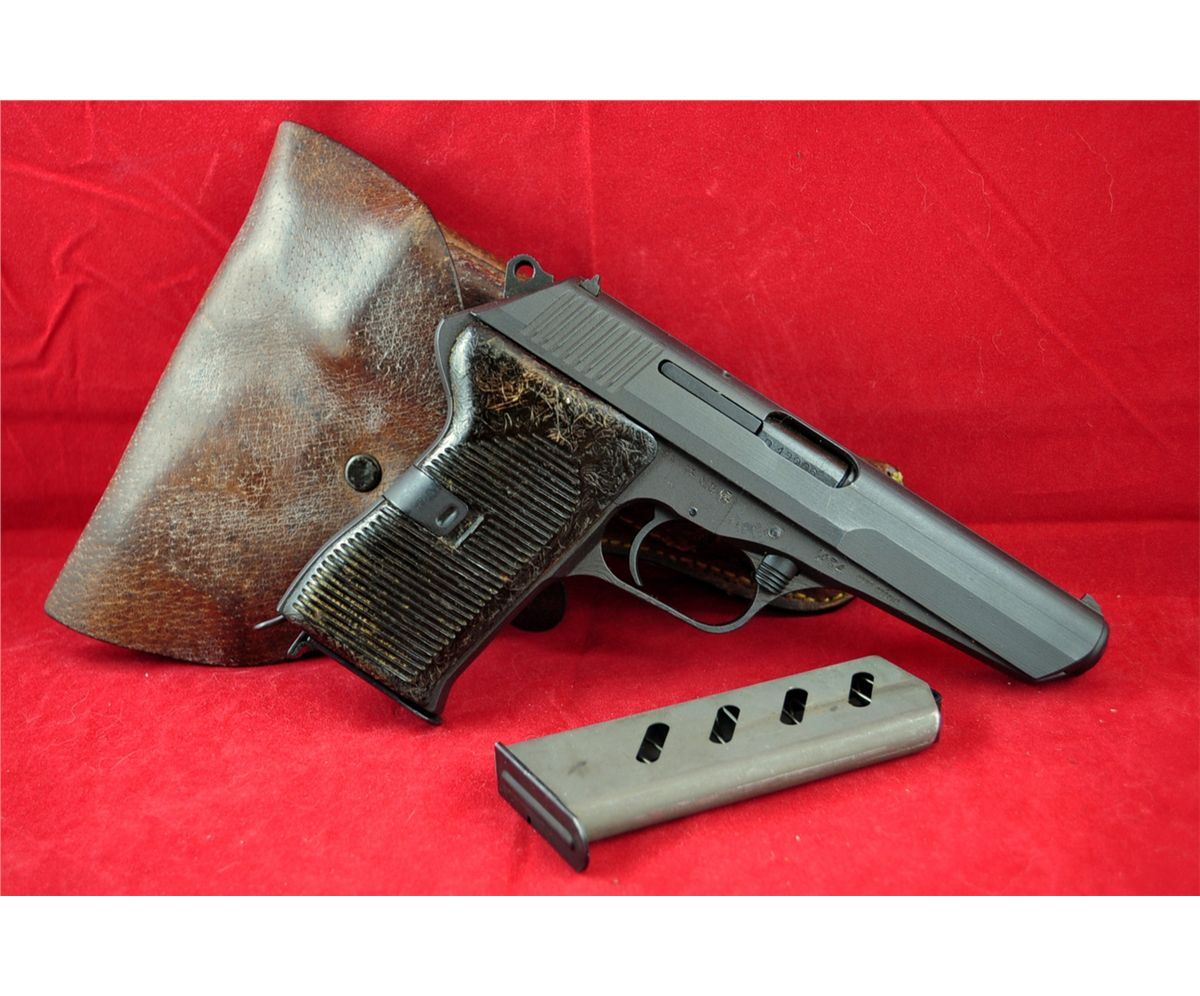 CZ Model 52, 7.62X25, Semi Automatic Pistol, Ser.#D12906, Extra Clip, Cleaning Rod and Pig Skin Holster. Pistol and holster are in good condition..See photos for more information. See photos for more information.Kennedys Auction Service has not attempted to test fire any gun in this auction and all guns are sold "IN AS IS CONDITION" and are not guaranteed to be operational.
