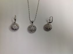 18" Necklace with Pendant and Lever-Back Earring Set Rhodium-Plated with Clear Round and Baguette Cubic Zirconia in Gift Box