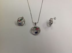 18" Necklace with Pendant and Earring Set Rhodium-Plated with Round and Multicolor Marquis Shaped Cubic Zirconia in Gift Box