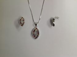 18" Necklace with Pendant and Earring Set Rhodium-Plated with Clear Round and Multicolor Baguette Cubic Zirconia in Gift Box