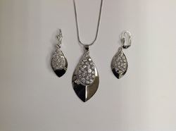 18" Necklace with Pendant and Lever-Back Earring Set Rhodium-Plated with round Cubic Zirconia in Gift Box