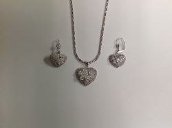 18" Necklace with Pendant and Lever-Back Earring Set Rhodium-Plated with Clear Round and Pear shaped Cubic Zirconia in Gift Box