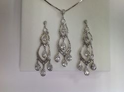 18" Necklace with Pendant and Earring Set Rhodium-Plated with Clear Round and Pear shaped Cubic Zirconia in Gift Box