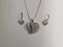 18" Necklace with Pendant and Lever-Back Earring Set Rhodium-Plated with round Cubic Zirconia in a Heartshaped Background in Gift Box