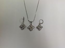 18" Necklace with Pendant and Lever-Back Earring Set Rhodium-Plated with Clear Baguette Cubic Zirconia in Gift Box