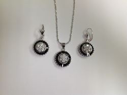 18" Necklace with Pendant and Lever-Back Earring Set Rhodium-Plated with Clear Round and Black Baguette Cubic Zirconia in Gift Box