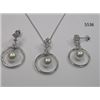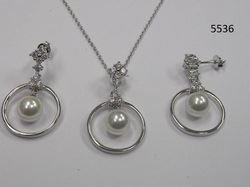 18" Necklace with Pendant and Earring Set Rhodium-Plated with round Cubic Zirconia and Lead-Free Glass White Pearl in Gift Box