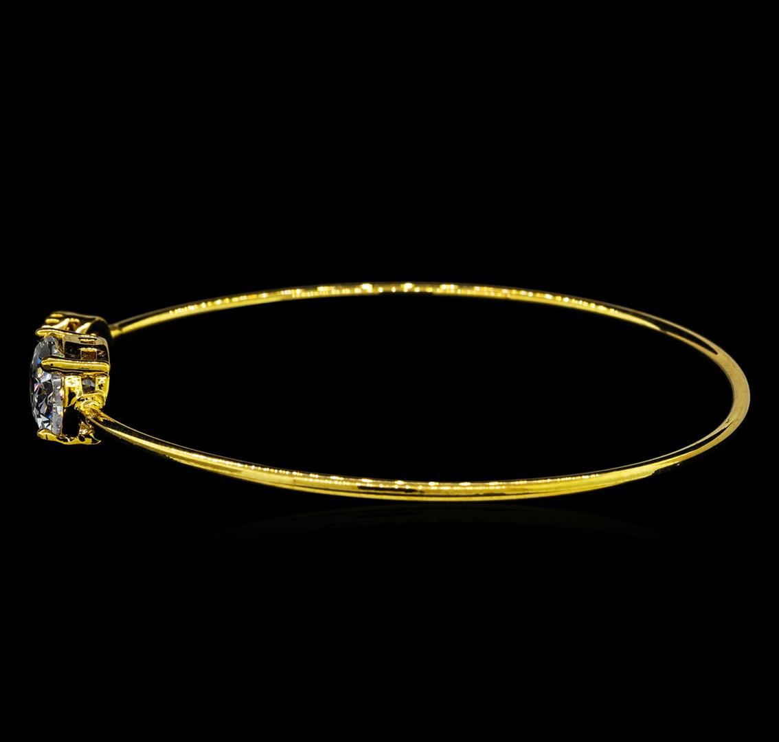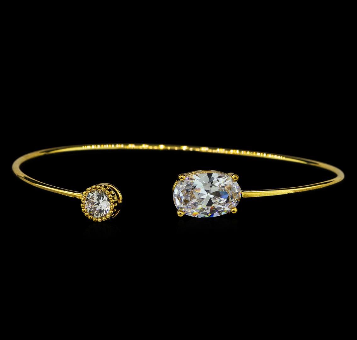 High end designer jewelry. CZ Open Bangle Bracelet - Gold Plated. 18 K Gold Plated Metal. Clear/ Gold. Adjustable. Total Weight: 5.4 grams.