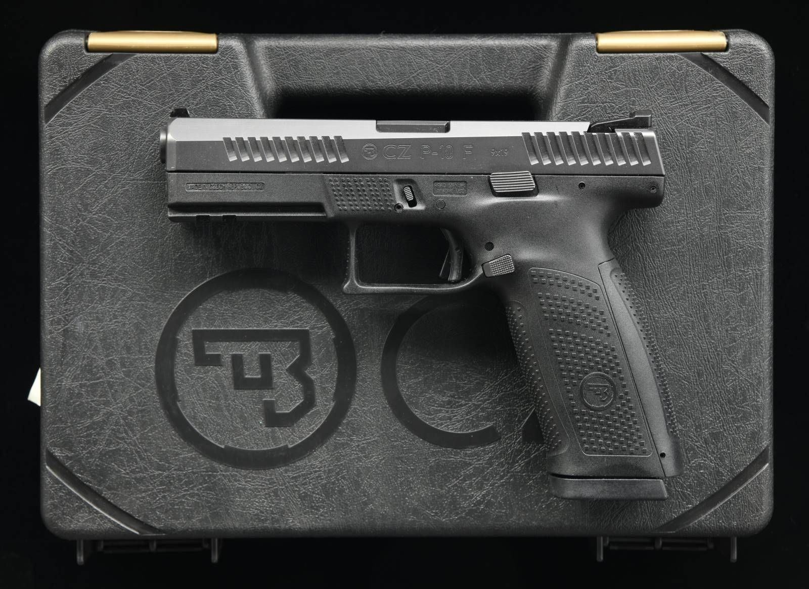Cal. 9mm Luger. S# F217491. Bbl. 4 1/2". Three dot sights. Matte black finish. Polymer frame w/ acceossry rail. MAGS: 2-18 rd. UNATTACHED ACCESSORIES: matching numbered factory hardcase w/ manual, cable lock, Allen wrenches & two spare grip straps. CONDITON: all aspects near new in box. PROVENANCE: The Collection of Gun Sport Ltd owned by Jon R. Thomas. (23-4248/MJC). MODERN. $450-600.