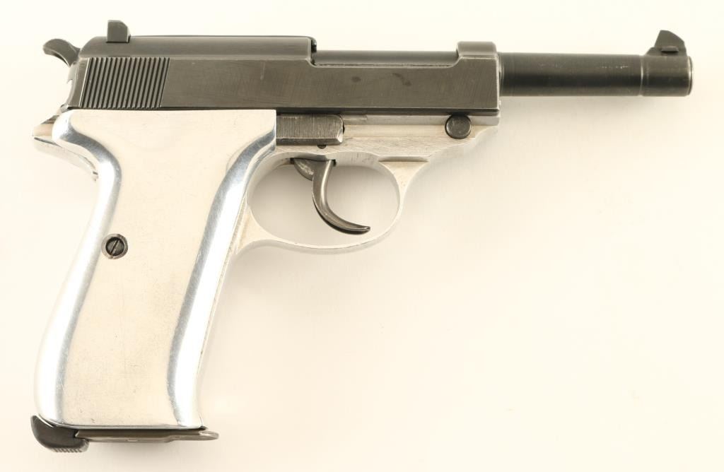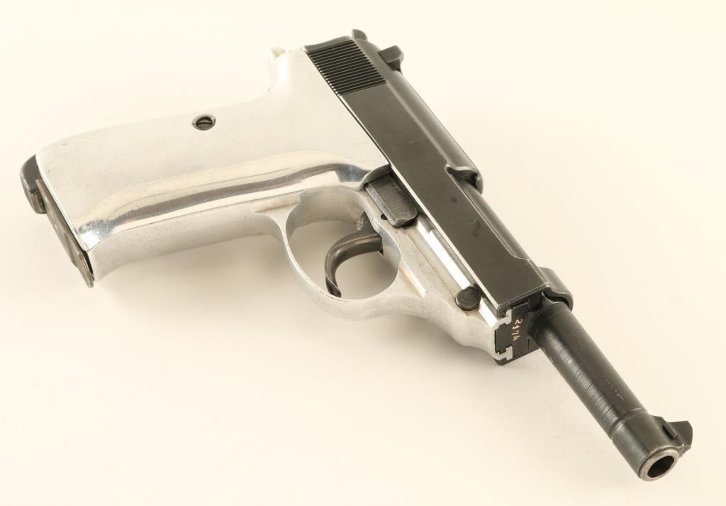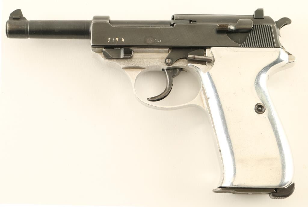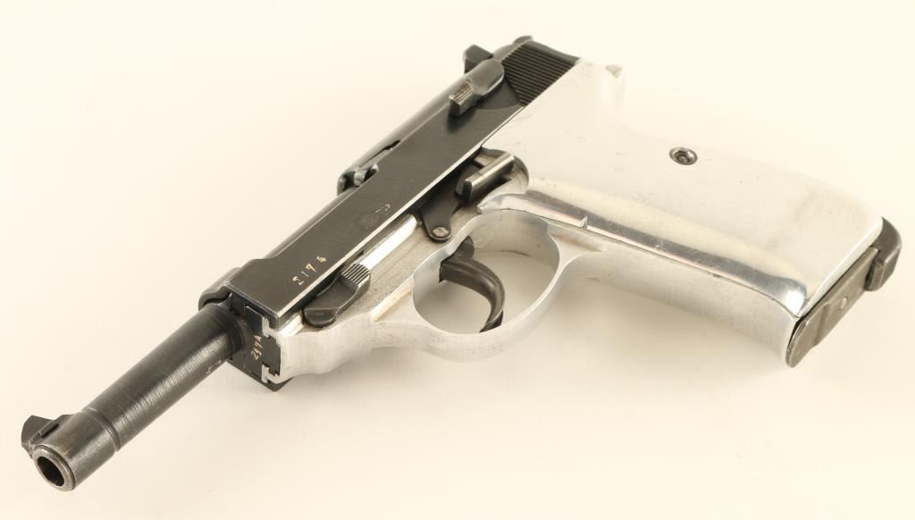 German military semi-automatic pistol chambered for the 9x19mm Luger cartridge. Features fixed sights, slide mounted decocker/safety, heel magazine release, double/single action trigger. Bore is excellent with sharp rifling. Blued slide and barrel are dark and even with a small blemish to the left side of the slide and some small scratches overall. Frame is bare metal, appears to be aluminum with absolutely no finish, and is in excellent shape. Grips are smooth bare aluminum are in excellent shape. All observed numbers match and no import marks observed. Condition is NRA Excellent ***C&R Firearm***