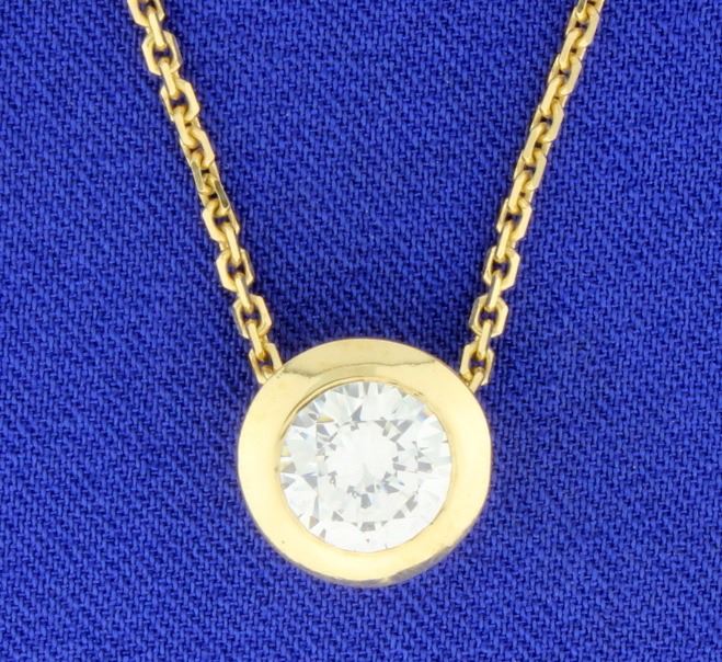 14K yellow gold, the pendant is 1/2 inch in diameter with a 2ct round CZ. 6.4g